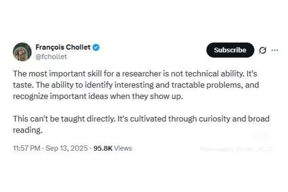 The most important skill for a researcher is not technical ability. It’s taste. The ability… Read More »The most important skill for a research is taste !